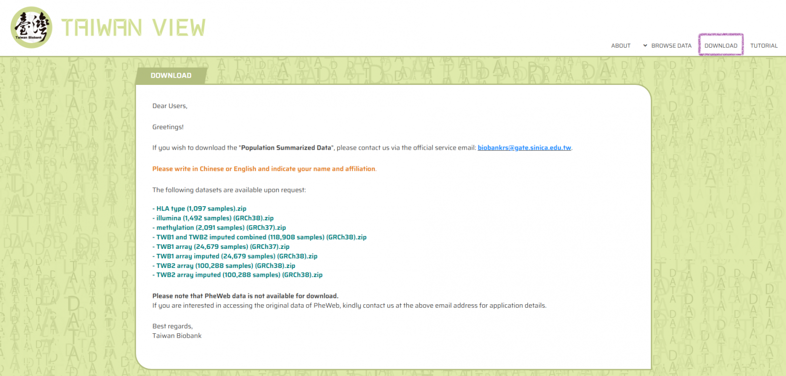 臺灣人體生物資料庫 TaiwanView 網站 已重新上架開放服務!